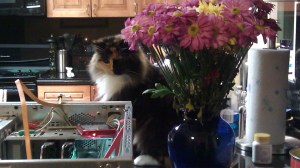 Best part of the whole thing? Bess is sitting under a bouquet of flowers peaking her head into the guts of my machine, making sure the “humans” do it right!